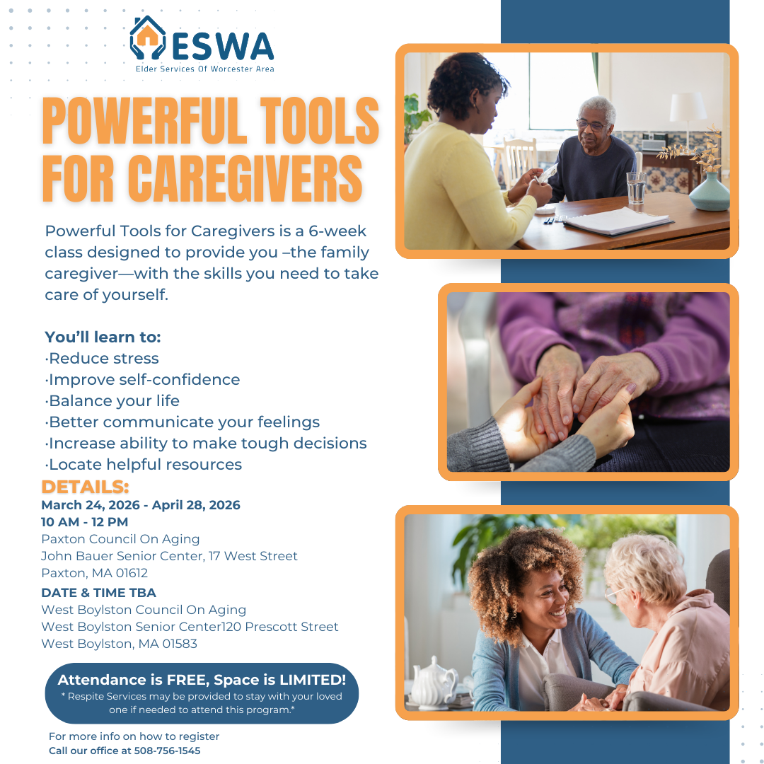 Powerful Tools for Caregivers is a 6-week class designed to provide you –the family caregiver—with the skills you need to take care of yourself.